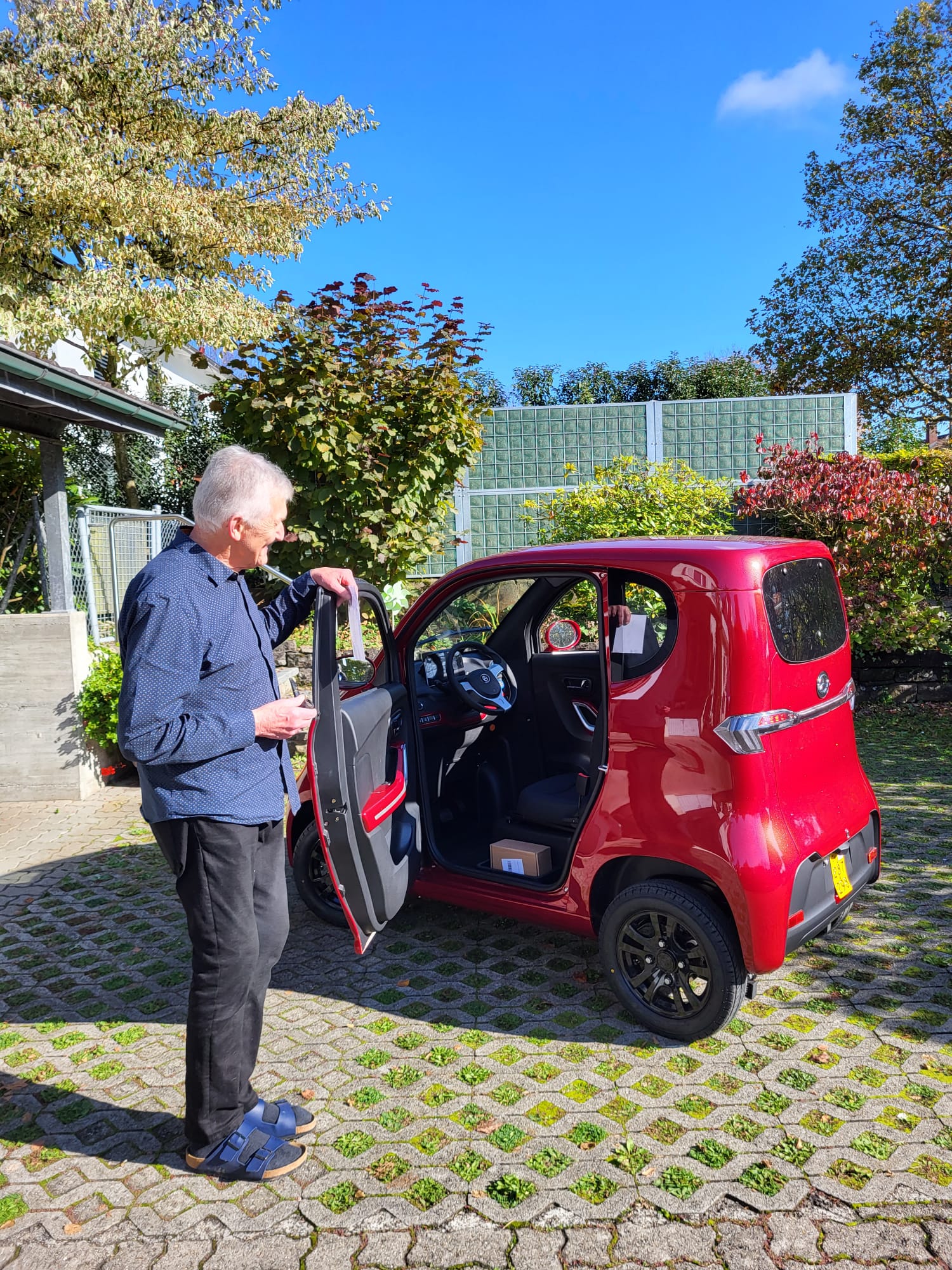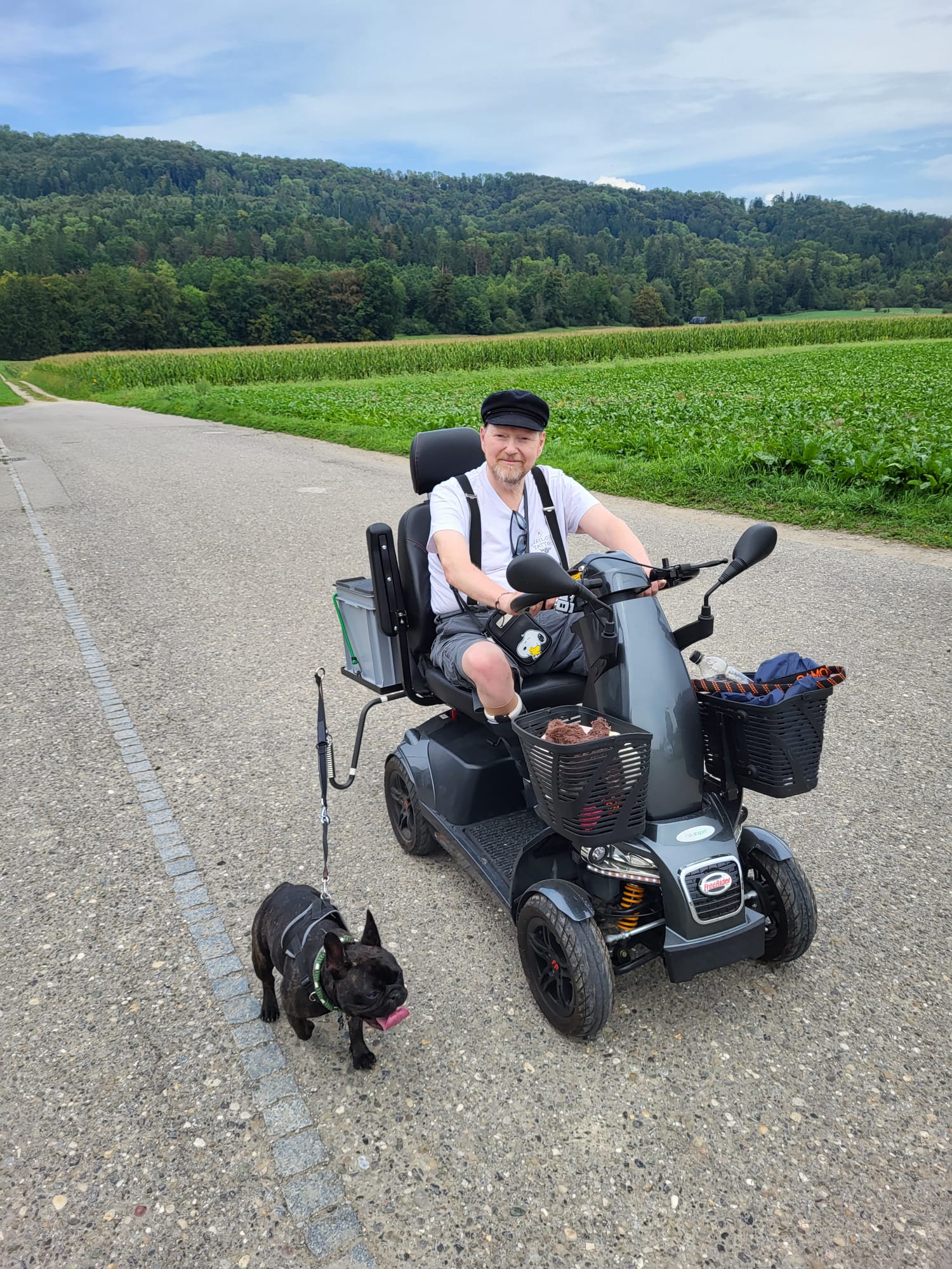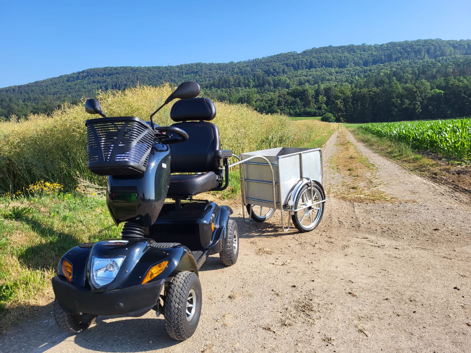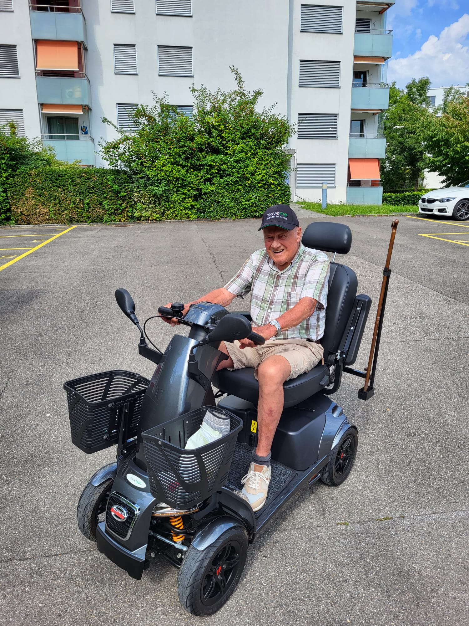 Elektromobil für die Zeit mit Krücken. Der Sohn hat das Elektromobil move Highlander vom Vater ausgeliehen.